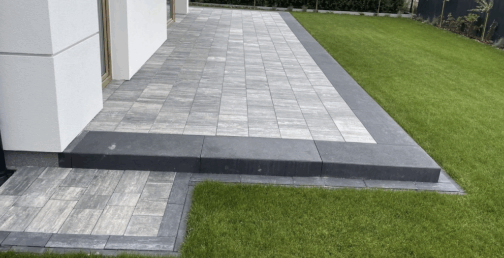 Kostka brukowa nie jest już tylko domeną podjazdów. Coraz częściej stosuje się ją na tarasach – zwłaszcza w połączeniu z zielenią i nowoczesną architekturą.
