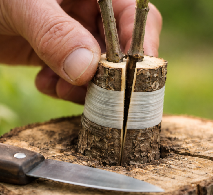 Szczepienie nożem nie wymaga żadnego sprzętu poza ostrym nożem. W terenie, w sadzie lub przy pojedynczych drzewach może to być po prostu wygodniejsze i szybsze rozwiązanie.