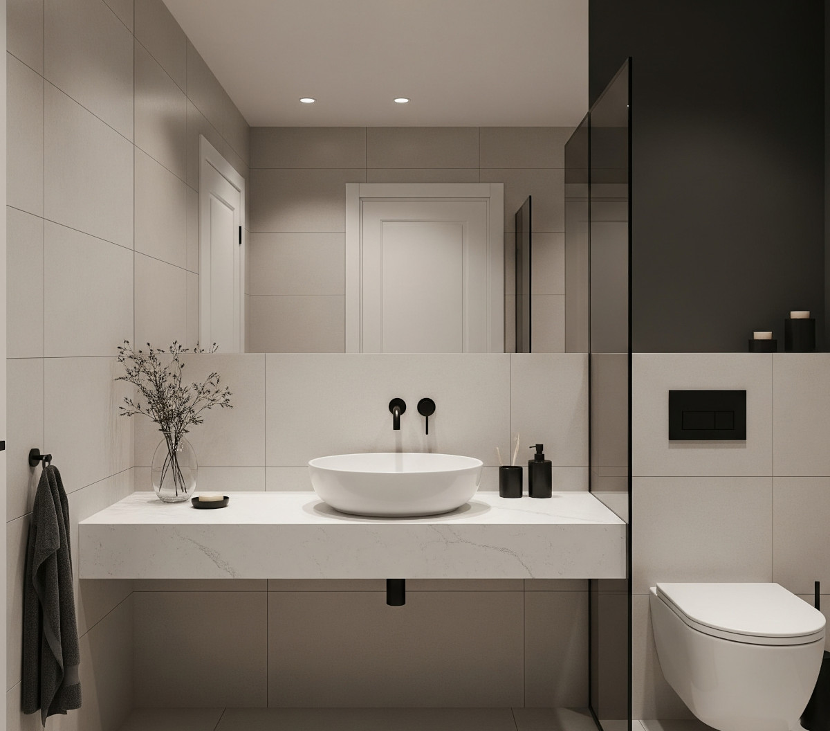 To rozwiązanie, w którym umywalka jest wpuszczona w powierzchnię blatu, co umożliwia łatwe utrzymanie czystości wokół niej. Idealne do minimalistycznych wnętrz, gdzie każdy detal musi być starannie przemyślany.